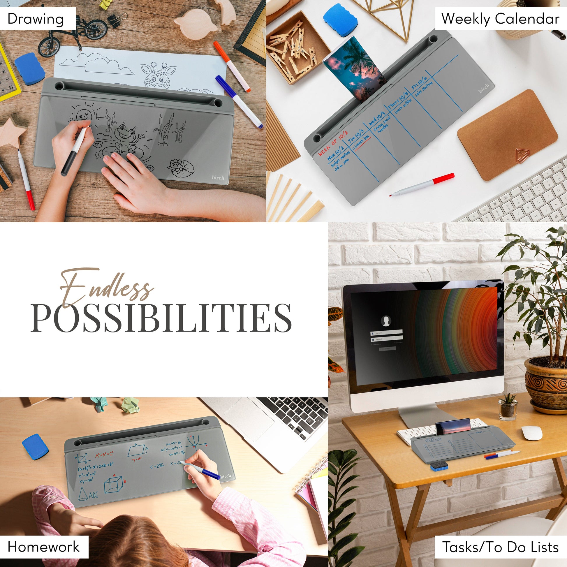 Birch Desktop Whiteboard with Storage & Erasable Marker Large Surface Desktop Glass Dry Erase Board Desk Top White Board Dry Erase Notepad Desk White Board Tabletop Desk Whiteboard