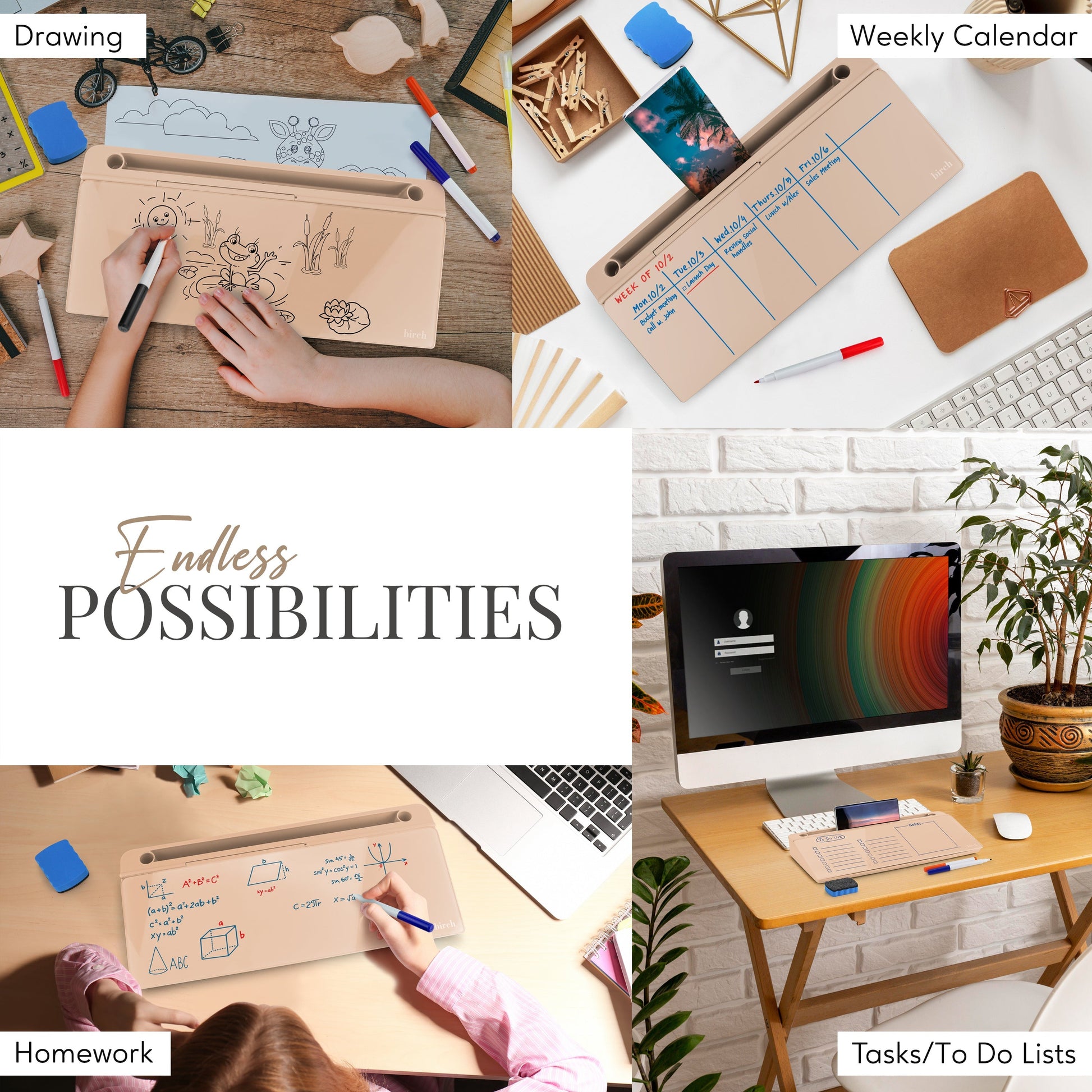 Birch Desktop Whiteboard with Storage & Erasable Marker - Sand (00197644247134)